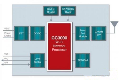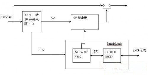 智能插座里最核心的無(wú)線連接方案采用了TI的SimpleLink Wi-Fi處理方案,通過TI的CC3000MOD和MCU MSP430F5309構(gòu)成了一個(gè)非常精簡(jiǎn)的無(wú)線網(wǎng)絡(luò)連接。CC3000MOD支持IEEE 802.11 b/g協(xié)議同時(shí)內(nèi)置了IPv4 TCP/IP協(xié)議棧,能夠與低速、低成本和低功耗的MCU(比如MSP430系列)組成非常理想的無(wú)線網(wǎng)絡(luò)處理。TI的SimpleLink方案提供了強(qiáng)大技術(shù)支持,簡(jiǎn)化了軟硬件設(shè)計(jì)以及App的開發(fā)。
