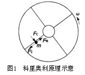 質(zhì)量微粒m在以角速度ω轉(zhuǎn)動的系統(tǒng)中除受到離心力FZ和摩擦力FR外,還受到垂直于其運動方向的慣性力FC的作用,通過測量這個力,可測得質(zhì)量m,這就是科里奧利原理,如圖1所示。