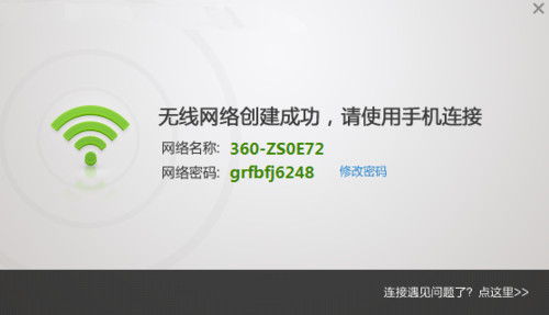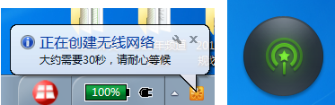 安裝完成后,系統(tǒng)任務(wù)欄會(huì)出現(xiàn)360隨身Wi-Fi的圖標(biāo),并提示無(wú)線(xiàn)網(wǎng)絡(luò)創(chuàng)建成功。