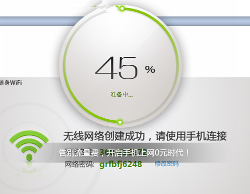 屏幕上會(huì)提示無(wú)線(xiàn)網(wǎng)絡(luò)創(chuàng)建進(jìn)度,30秒左右即可完成網(wǎng)絡(luò)創(chuàng)建。